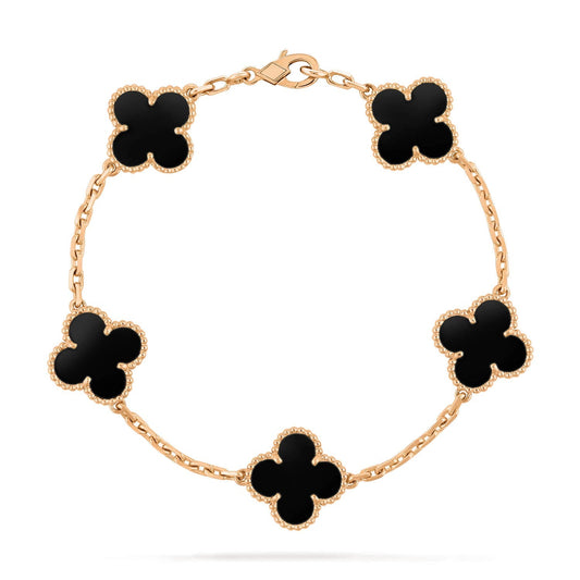 [Eternal Jewelry]CLOVER 5 MOTIFS BLACK ONYX BRACELET